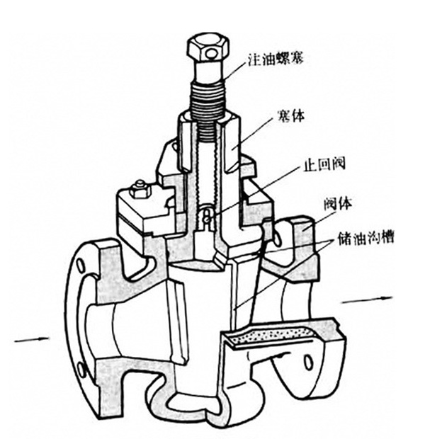 4.油封式圓錐形旋塞閥:采用強制潤滑,使得旋塞和閥體密封面間形成一層油膜。密封性能好,廣泛用于輸油,輸氣管道。